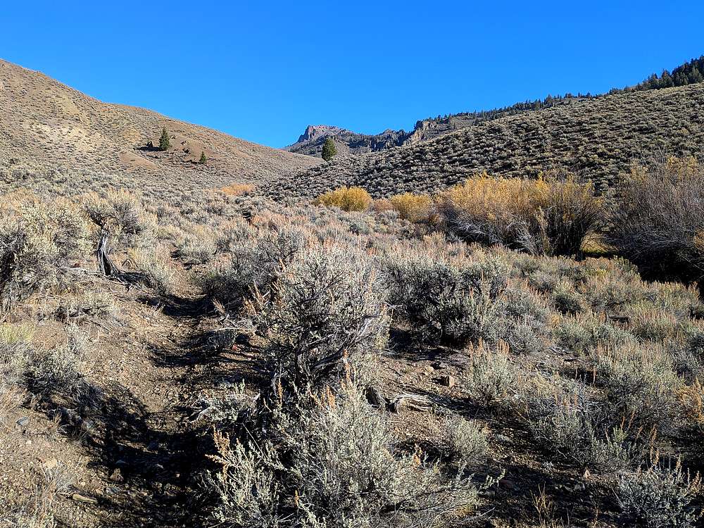 | Here we are ~7800', having left the trail for some sagebrush hiking. Bowery & Sheep Peaks in the background. |