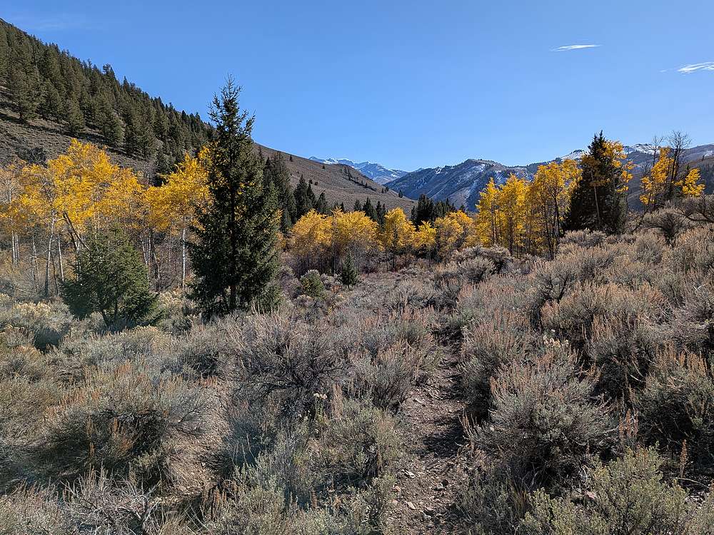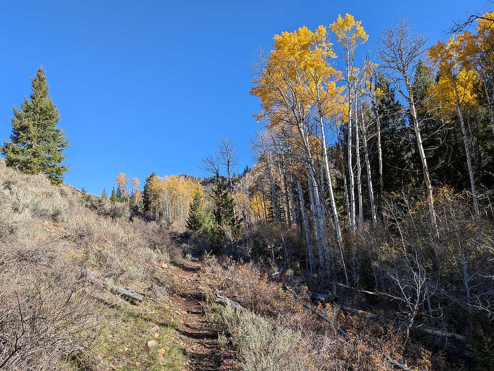 | From the ridge, we dropped into the headwaters of Corral Creek, and found an elk trail that took us back down to the main trail. |