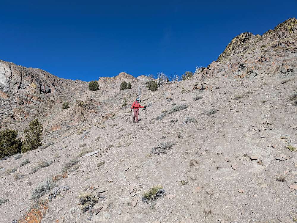 | Hiking up the west ridge of Bowery Peak. From here, it would seem the best way is climber's left. But as we got closer, we ended up on a more direct route. |