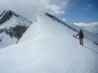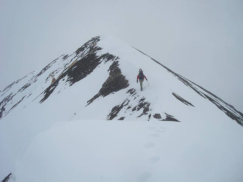 Heading up the ridge, staying a safe distance from the edge of the cornice.
