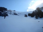 On the way down the mellower portion of the ridge to the northwest, the snow was getting softer and balling up on our crampons a ton. John took his crampons off, but I endured for a while as we descended back down to the top of our gully. Conditions were perfect for a nice long glissade, and we dropped over 2000’ feet in under 5 minutes. It probably took twice that long for our butt-cheeks to thaw out afterwards. From there, all that was left was some wandering through the fields of mohohany shrubs before reaching the car at a little after 3pm. It had been a fantastic day in the mountains. A challenging climb, great views, and great company. Hard to beat.