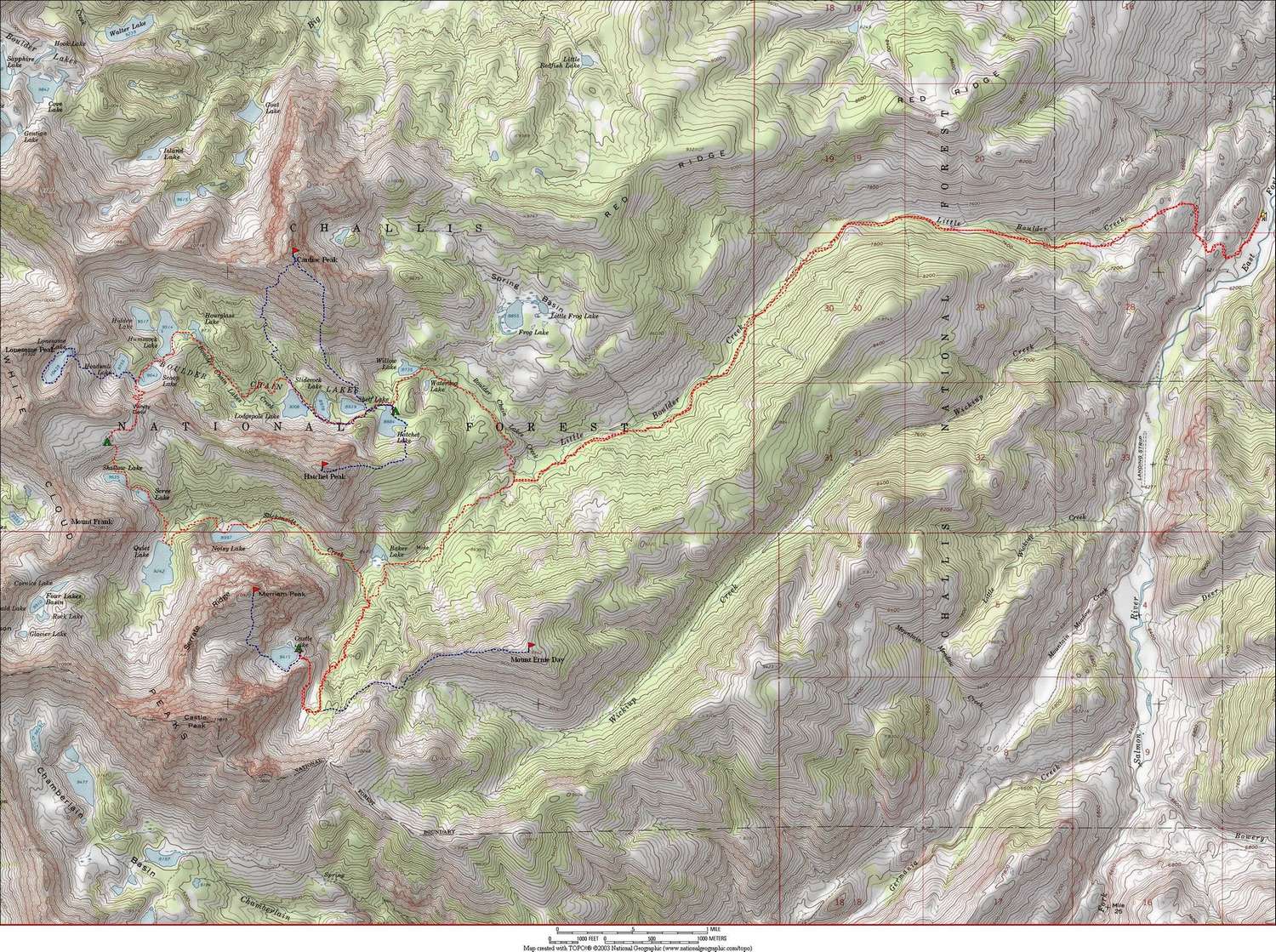 The White Clouds offer some great multi-day backpacking options. One of the most popular areas in the range is the Boulder Chain of Lakes, which is a string of 12 alpine and sub-alpine lakes surrounded by fantastic views. We’d been in to check out the lakes a few years ago, but this time we would come in the more commonly used route from the Little Boulder Creek trailhead. Our four-day plan was to hike in the Hatchet Lake on day 1, then up the Boulder Chain on day 2. Day 3 would take us down Slickenside Creek to Baker Lake, then up to Castle Lake. For the fourth and final day we’d descend back to the trailhead. I naturally had aspirations of climbing a few peaks along the way.