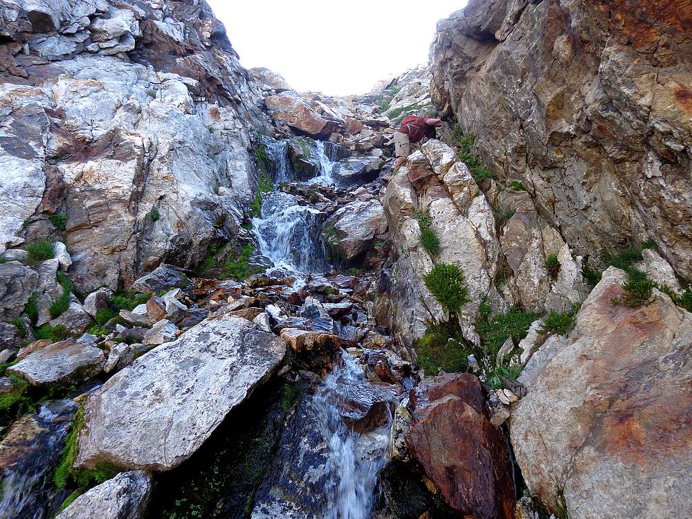 After a good night of sleep, it was time to head up the basin to the saddle between Williams and Thompson. Our packs felt heavy as we did occasional class III scrambling on the way up, but our spirits were high thanks to the constant distraction of amazing views along the way.