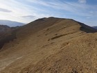 From the saddle, I carefully made my way up the steeper sandy slopes while looking for solid footing. Soon enough I made it the summit, where I was greeted by great views and a blast of wind. I briefly debated a traverse to “Artists Palette Peak” to the west, but I couldn’t spot a good route. Instead, I decided to descend a different ridge to the east on the way down to see some more interesting terrain.