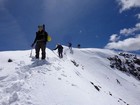 The only real unknown of the day would be the final summit ridge. There had been reports in prior years of dueling cornices overhanging both sides of the ridge. If we saw any first sign of that today, we would have to play it stay safe and turn back. But from the false summit, we could see most of the ridge. It looked doable, so on we went.