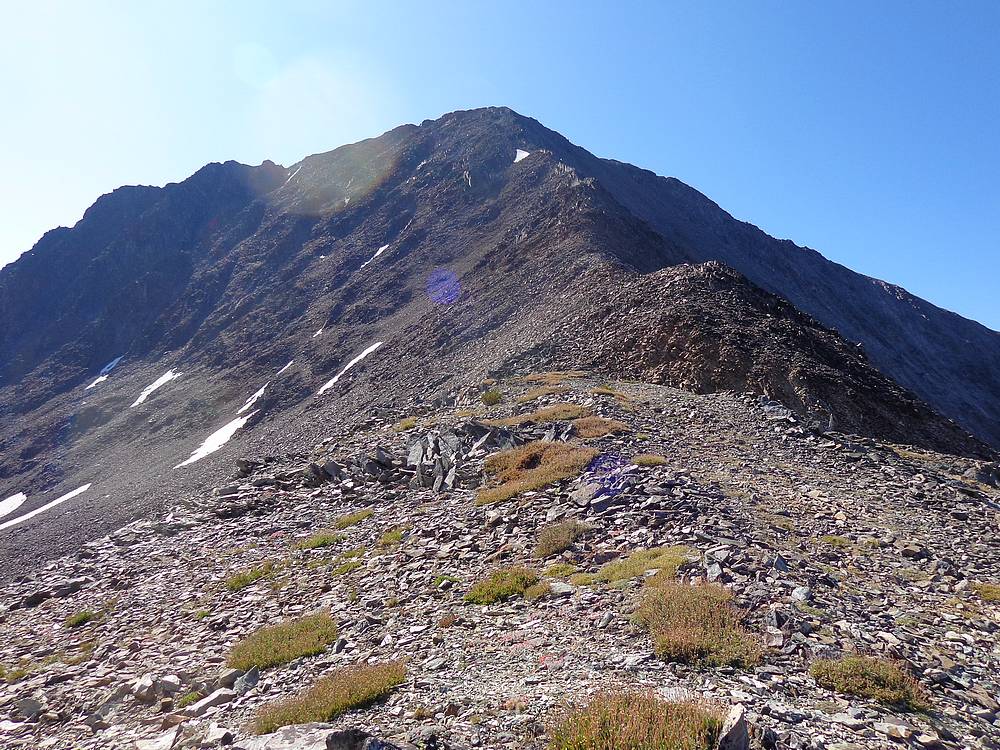 It took some route-finding to get back down Lem Peak. But were made it and were even able to bypass the sketchy section encountered on the way up. I decided to try for one more peak. John and Michael were satisfied with the day’s adventures, so they dropped down into the basin when I hiked up North Lem Peak.