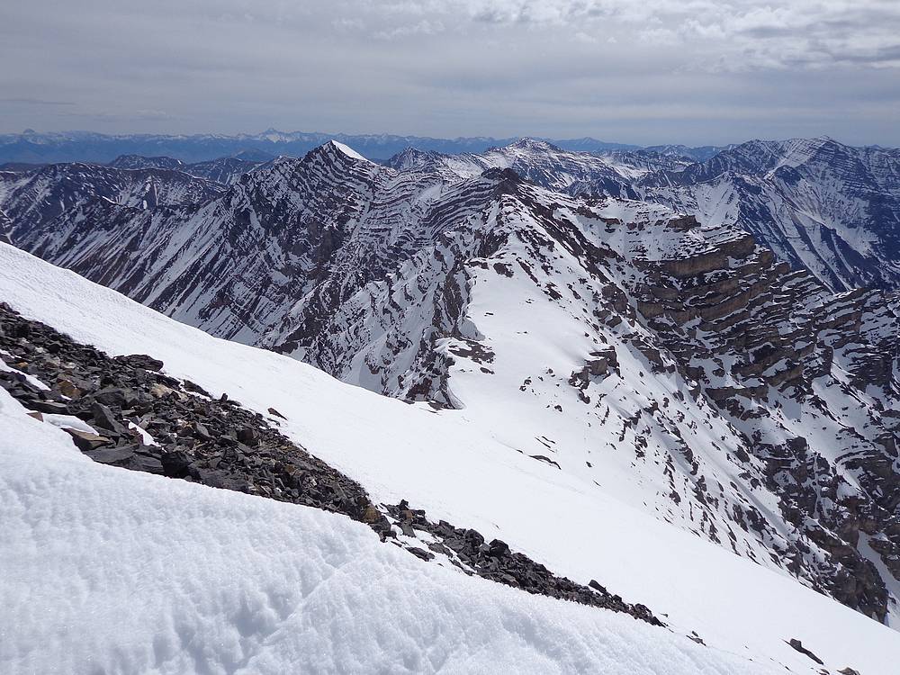 So down I went, descending 700’ that would have to be re-climbed later. Once at the connecting saddle, it was time to climb again. The snow was supportive in most places, and I was able to connect a few rock sections and avoid any major post-holing. But the early-season, high-elevation workout was starting to take its toll on me, and my pace was slowing.