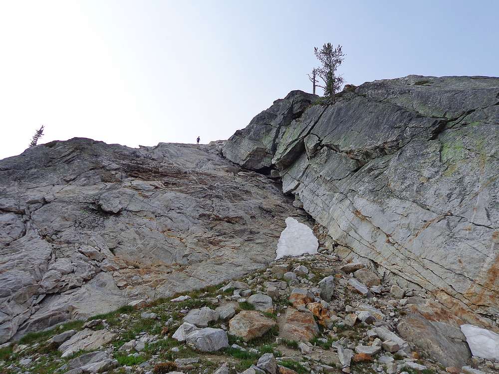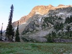 The views of Mount Regan above Sawtooth Lake were fantastic as we made our way around the lake. I paused a couple times to bask in the beauty, and was feeling pretty sentimental about sharing one of my favorite places with my sons. It took us 25 minutes to hike the length of the lake, and sure enough we found a great campsite in the trees on the north shore of Lake 8489’. (Please, please, please do not camp in the grassy area closer to the lake. The campsite by the trees is great, already worn in, and avoids damaging the alpine terrain lower down.)