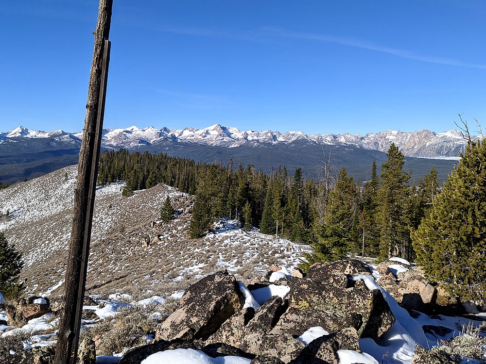 View of the Sawtooths from West Fisher Creek Peak. |
