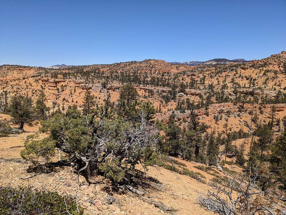 On the way back, I thought it would be cool to make a loop. Unfortunately, brush on and around the summit made for slow going, until I eventually escaped it a after a half mile of bushwhacking. Once below the brush, the terrain was more interesting, and I took my time the rest of the hike back to the car, enjoying the views along the way.