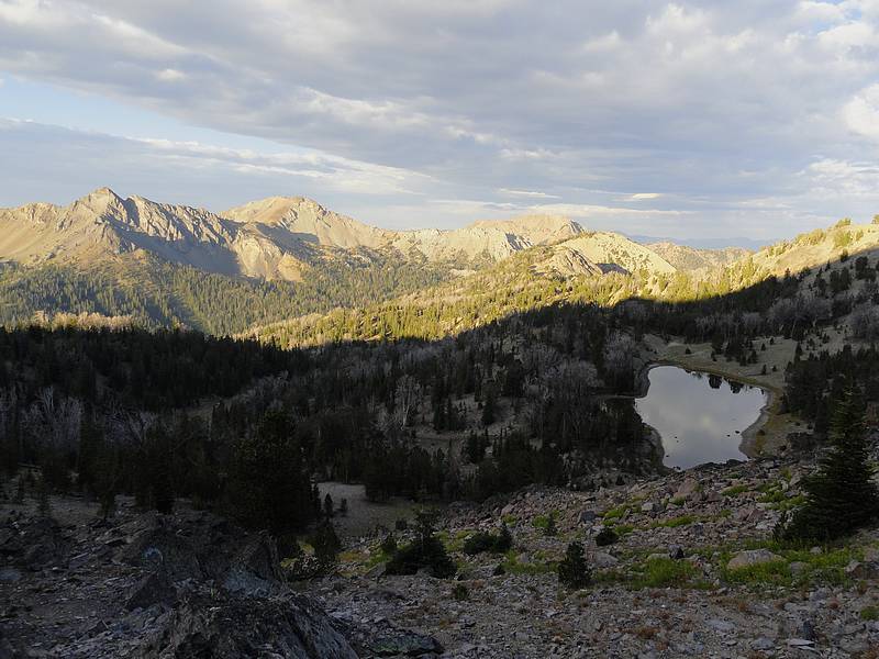 After a four-hour drive from Boise, I reached the Galena Gulch trailhead at about 11pm Saturday night. Along the way I’d stopped to take some low-light photos of the orange glow of the Halstead forest fire burning outside of Stanley. It was pretty surreal. Fortunately, there was little to no smoke in the White Clouds. After a good night of sleep in the back of the Durango, I was up by 5:30. But I wasn’t alone. A couple archery hunters pulled up on trail bikes and parked a short distance away. They didn’t have their headlamps on, but I could hear them wading through the underbrush to find the trail. They didn’t say a word, probably hoping I was headed elsewhere. So after a quick breakfast, I hit the trail at a brisk pace. It was a bit eerie knowing my silent companions were somewhere out in the dark in front of me. After a couple miles I caught up with them, and they were less than thrilled that my headlamp had apparently scared off a bull elk they were stalking. After a short discussion, they let me pass by. A short time later, I spotted a 6-point bull elk in an open meadow ahead of me. It hung around for at least 5 minutes before wandering off into the timber, and would been a pretty easy target for my camo-covered companions. I don’t hunt, and don’t have any problems with folks who do, but I was glad the elk survived another day.