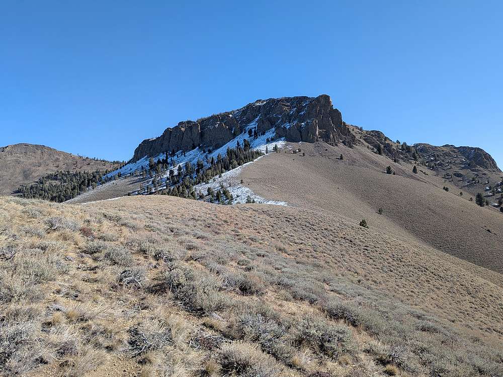 | View of Potaman Peak and its west ridge, from the trail to the south. |