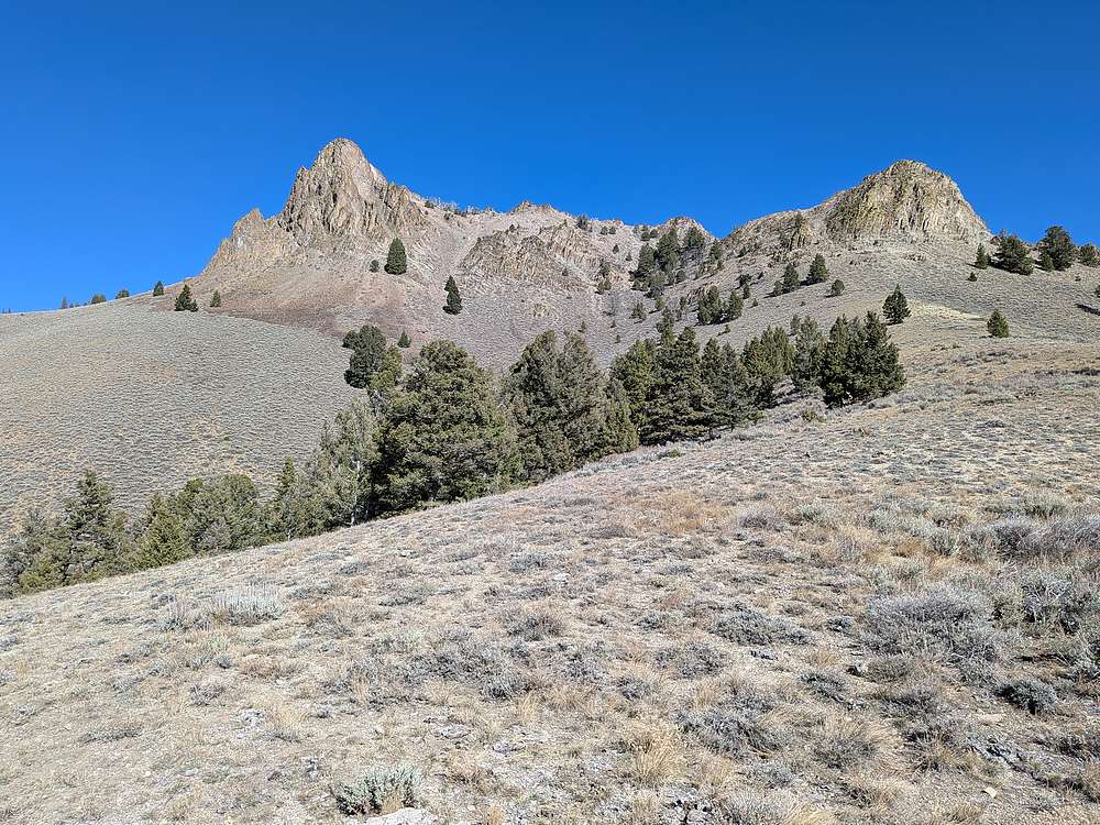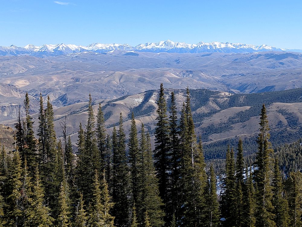 | The Salmon River Range. I think this is Cabin Creek Peak, with Mount McGuire visible in the distance. |