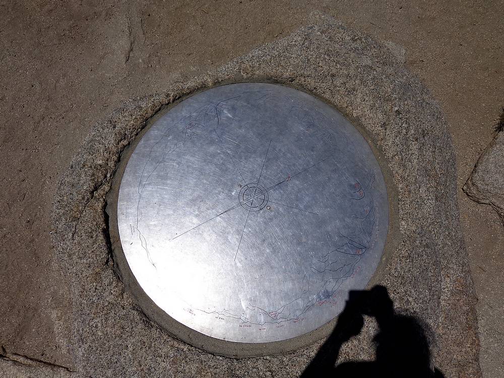 Summit marker that labels the panoramic view seen around you. |