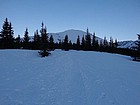 I was up by 5am and made it to the Quandary Peak trailhead by 7am. There were already three other cars there. I’d read some recent condition reports about the snow being very supportive, and elected to leave my snowshoes in the car. Starting out, the trail through the snow in the trees was like a superhighway and was very easy to follow. Once the trees start thinning, the track starts spreading out, but navigation is still easy. Just climb up!